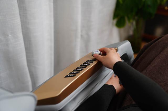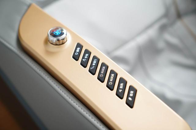 S560:触摸屏和扶手控制,扶手升级多了一排快捷按键,触手可达,热敷位置是腰部和腿部,且档位可调,带语音播报