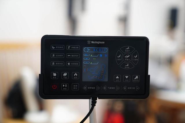 显示屏可以架在支架上使用,也可以取下来,拿在手里用,点哪里就是操控哪里,除了一键式程序,对每个部位的按摩力度按摩位置都可以定制化自行调整