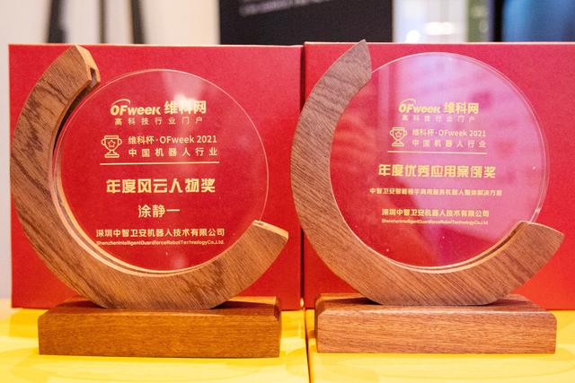 据了解,本届评选设立8大机器人行业奖项,涵括机器人产业链的上下游,对机器人企业战略规划、企业文化、品牌口碑、市场应用、产品研发、投资价值等多方面进行考察和筛选。基于在商用服务机器人领域领先的技术创新能力以及规模化的场景应用,中智卫安从众多参评企业中脱颖而出,荣膺“维科杯·OFweek 2021中国机器人行业年度优秀应用案例奖”;中智卫安CEO涂静一以其创新思维及实干能力,获得“维科杯•OFweek 2021中国机器人行业年度风云人物奖”。