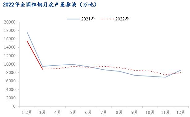 4月19日,据发改委表示,2022年将继续压减全国粗钢产量,确保实现全国粗钢产量同比下降。