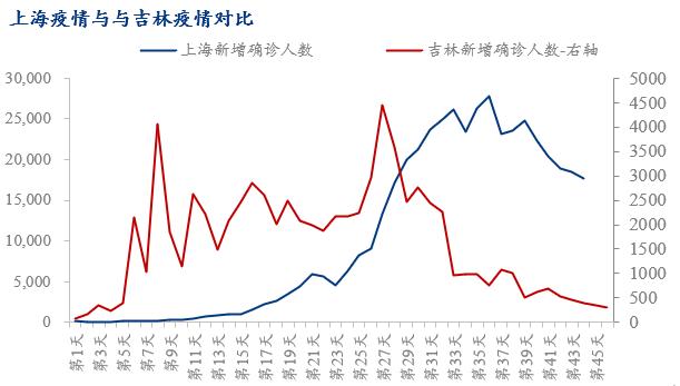 此轮疫情持续时间较长,尤其是经济发达区域,对比上海与吉林疫情,吉林在3月14日达到单日新增最高后,后期有反复情况,4月2日再次创单日新增最高,4月14日,全省实现疫情防控社会面清零目标,从疫情高点到社会面清零,约一个月时间。对比上海与香港疫情情况,香港在3月初创下单日新增最高,截止到4月21日,单日新增为119例,疫情形势基本得到控制,约一个半月时间。根据两个城市防疫经验,上海在4月13日达到单日新增高点,目前拐点应该已经出现,预计要实现社会面清零,约需要一个月至一个半月时间,预计上海疫情降到5月中下旬得到基本控制。