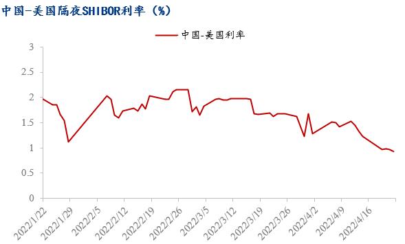 中美利差明显收窄。随着3月美联储加息以来,中美利差出现显著收缩,截止4月22日,中美隔夜SHIBOR利差为0.92857%,月环比收窄0.69%,相当于接近70个基点,而美联储仅加息25个基点,说明美联储加息后造成的实际全球流动性的收缩应该超出预期。