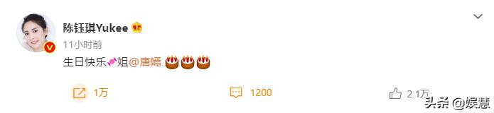 从电视剧回到现实,唐嫣旗下艺人陈钰琪、穆乐恩等也在零点过后发文为“老板”庆生。