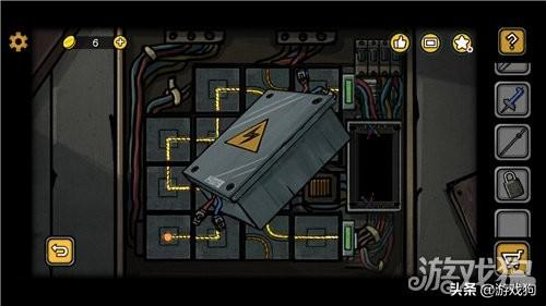 6.关起来之后再点击墙壁上面的配电箱,用十字螺丝刀把上面的螺丝拧下来,小伙伴们应该已经知道怎么更换螺丝刀了吧。之后打开配电盒,再用扳手把坏电池上面的螺丝拧下来,再换上之前得到的好的电池。再完成一个连接线路的小游戏就可以了,电路就连接好了;