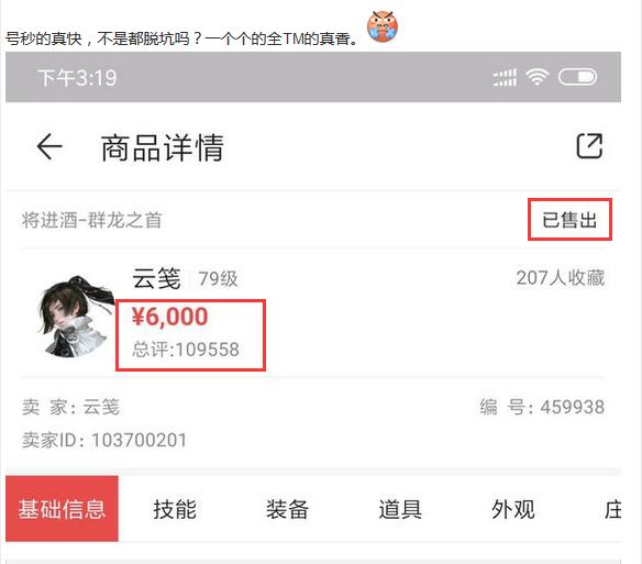 藏宝阁一个同样是10万分的账号,挂上6000的价格也是瞬间就被人买走。有玩家说:"看上一个号还在犹豫,没想到就被人买走了,不都脱坑了吗?这游戏不是凉了?一个个的真香呀。"