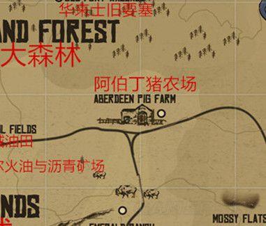 地图的正中间是一大片草原和牧场,对应截图无法准确定位,推测在这个区域。