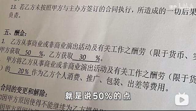 这位经纪人当着气球哥和谭乔的面承认,气球哥已经和公司签约。合同约定,气球哥从合作收入中分成30%,另有20%作为他的生活和消费费用,公司提取剩余50%收入。