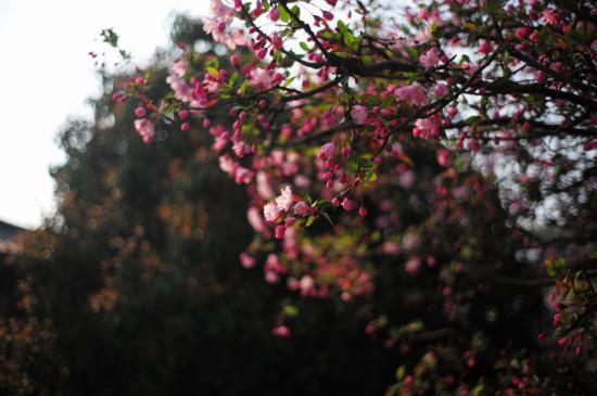 春日里,海棠花开时,垂英凫凫、柔蔓迎风,如秀发遮面的淑女,脉脉深情,惹人怜爱。西湖各处几乎都有海棠点植,求“偶遇”的话,浙江博物馆周边绿地、镜湖厅等处都是不错的选择。