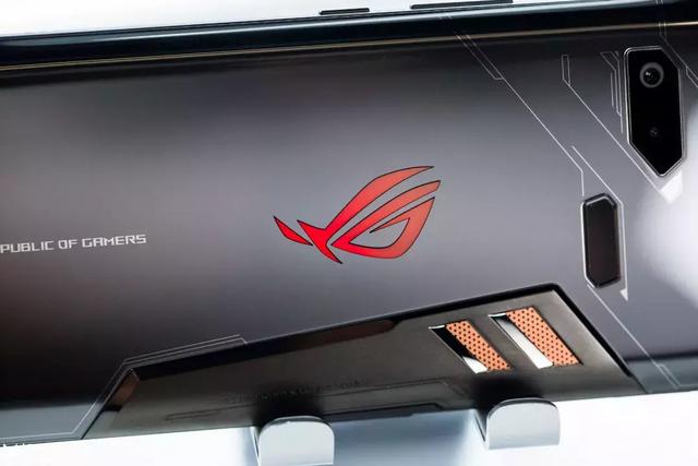 ROG Phone的背面元素丰富,较小的不规则菱形为后置指纹,但这个位置触摸时需要先适应一下,拼接设计的散热模块好在没有硌手感,整机重量达到200g,还是有些压手的