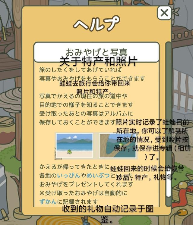 点帘子可以看蛙蛙收集到的东西和去过的地方的相册