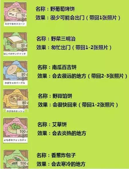 6. 物品的作用:例如棉被可以让蛙蛙去城里旅行,帐篷会使它去野营,灯会去探险……触发的概率与价格相关,越贵的越容易触发,具体效果如下: