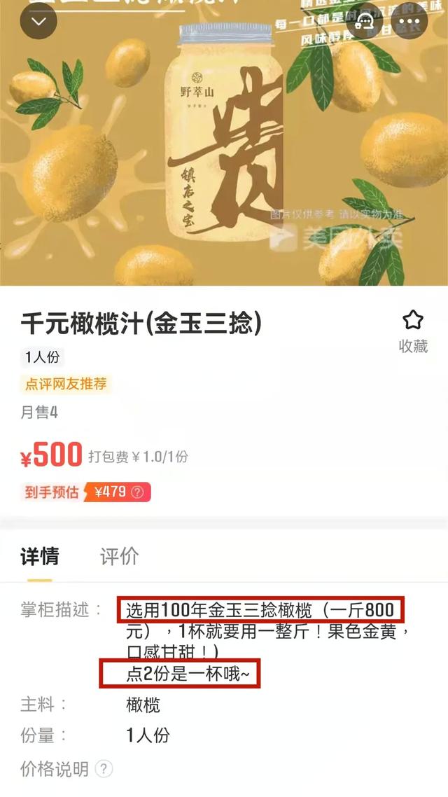 记者联系上一家野萃山门店,工作人员表示,“原料是潮汕那边的橄榄,它的价格大概是800元一斤。”工作人员表示,在制作饮料的时候会选取约一斤的金玉三捻橄榄,加上运输成本和人力成本并不算贵。