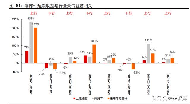 3); 3) 销量增速下行期,同时市场行情较差时,2010Q2-2012Q1 期间零部件板块仍有部 分相对收益,2017Q1-2019Q2 没有相对收益。