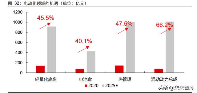 电动化:新能源车加速放量,热管理、轻量化等强相关领域有望实现超过 30%复合增长。