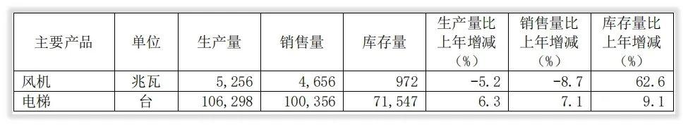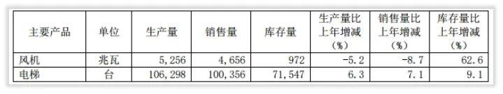 8. 2021年上海电气风机生产量5256兆瓦,比上年减少5.2%,销售量4656兆瓦,比上年减少8.7%。电梯生产量106298台,比上年增加6.3%,销售量100356台,比上年增加7.1%。