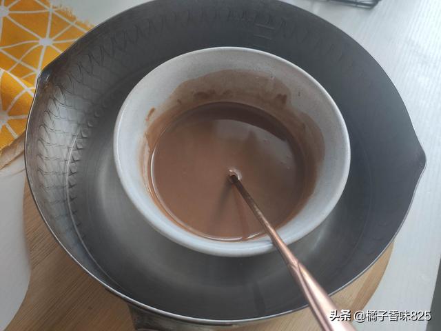 8、把巧克力和椰子油放在一个碗中,隔热水融化成巧克力液。