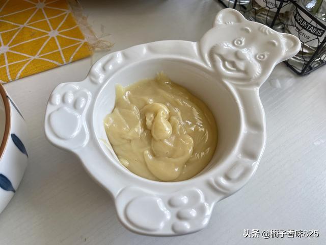 4、把奶糖酱倒入一个小碗中,晾一会儿。