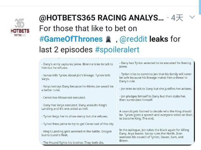 《权力的游戏》大结局遭泄密!结局出乎所有人的意料
