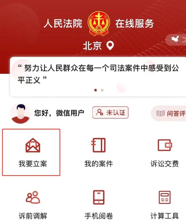 登录微信小程序“人民法院在线服务北京”进入在线服务平台,进行认证后即可在小程序上办理立案、案件查询、诉讼交费等多种事项。