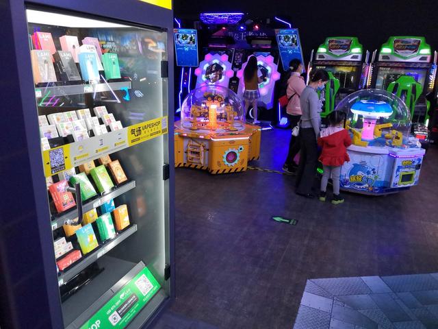 除了“一站式集合”售烟店增多之外,也出现了电子烟自动售卖机,甚至直接开进游戏厅。在合生汇商场一家游戏厅,某品牌电子烟的自动售货机就摆在前台处,购买需扫码验证身份。而售货机旁,不时有家长带着孩子走过。“还是有点担心,孩子会好奇这是什么?”一名家长说。