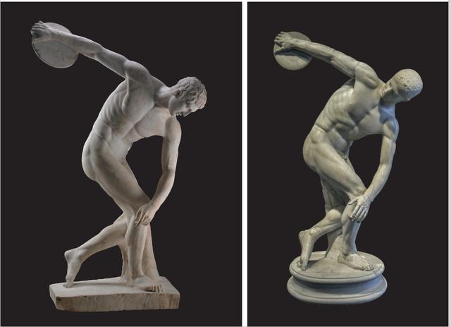 举世闻名的《掷铁饼者》(Discobolus)则来自意大利,而非希腊。其原作为青铜雕像,由古希腊雕刻家米隆(Myron)创作于约公元前 450 年。这件作品是古希腊雕刻艺术的里程碑,显示希腊雕刻艺术已经完全成熟。