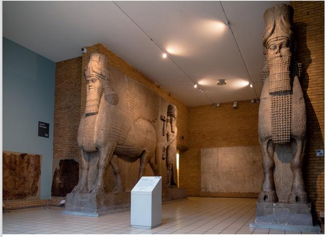 大英博物馆中东馆内令人印象深刻的展品就是这对巨大的人首翼牛像。这些雕像反映了制作者所崇尚之物:人的聪明头脑、牛或狮的强壮无敌和飞翼所带来的广阔空间。这种向往是所有文化共有的,只是表现方式不同。