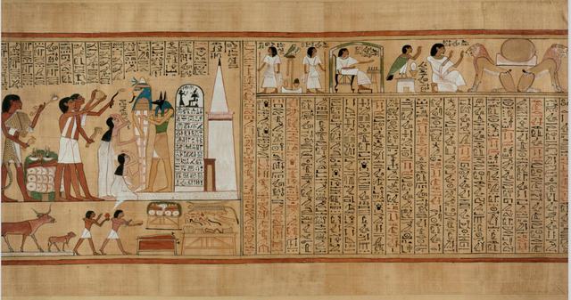大英博物馆内的最早的展品应该是古埃及的文物。右图 是大英博物馆收藏的来自埃及的《阿尼的纸莎草》(Papyrus of Ani),画的就是举世闻名的《死亡之书》。