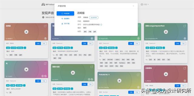 另一是在「发现声音」界面,每个声音素材都有详细的描述,点开「详情」可以查看商用许可说明。还可以在高级搜索中,将过滤条件设置为“仅公有领域音频”,确保找到的资源都是免费可商用的。