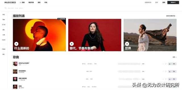 Musicbed 是很多专业人员都推荐的一个版权配乐网站,有非常多高质量的纯音乐。网站类似于一个音乐网站,有细致的分类和自定义歌单功能,非常适合日常积累配乐灵感时使用。