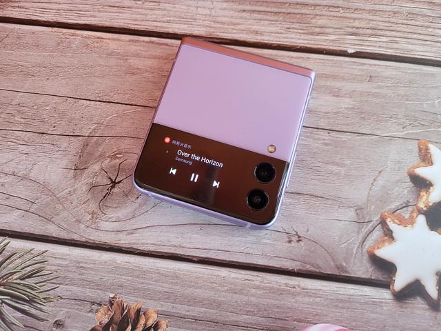 在等待收货的日子里,因为先前一些主观的因素,对Galaxy Z Flip3还是嫌弃的成分居多,想着会是华而不实。Galaxy Z Flip3有月光香槟、陨石海岸、夏夜森林、梦境极光四种配色,这四款配色作为老爷们我更喜欢紫色,收到货也是如我所愿。Galaxy Z Flip3相比上代外观上最大的升级就是外屏,从之前的1.1英寸增加到了1.9英寸,看数字变化不大,后期实际体验发现有质的飞跃。手机折叠起来屏幕之间还是存在些许缝隙的,感觉这是为了防止两块屏幕直接接触容易磨损而设计,不是三星做不到没有缝隙。