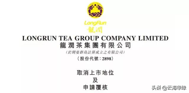 2019年9月9日,龙润茶的股份的上市地位当日上午9时正起取消,该股份上市的最后一天将为2019年9月6日。