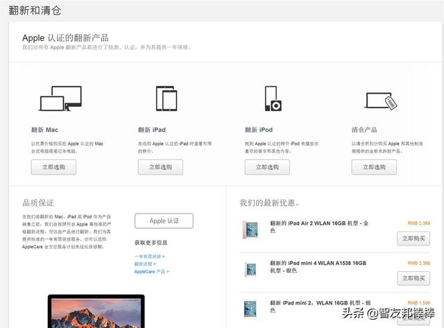 苹果会采取与全新零部件相同性能和可靠度的零部件组装在翻新产品中,并且检测确保其具有与全新的产品相同性能后再售卖。一句话概括,完全可以将苹果认证的翻新产品当成全新设备使用,不过要注意的是,目前国内售卖的官翻机只有 Mac、iPad 和 Apple Watch。