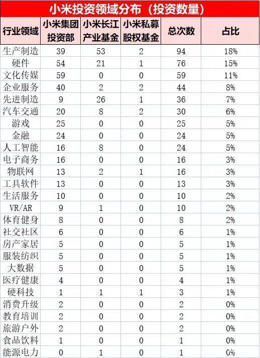 小米于2013年底正式开启生态链投资计划,通过直投、全资控股投资公司(天津金星创业投资有限公司和小米私募股权基金管理有限公司)间接投资以及与地方财政项目合作基金(湖北省长江经济带产业引导基金)共同投资三种方式,以“天使投资人”身份在各个领域进行了521次投资,设计领域超过17个,包括生产制造、硬件和文化传媒等。小米对于投资企业的布局与小米业务拓展的节奏息息相关,在不同时期也有不同侧重。对于用户来说,更加了解的还是小米在智能家居领域的创投产品。