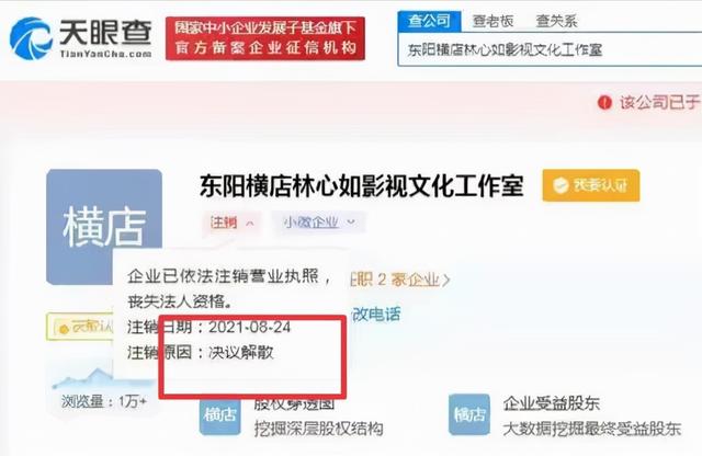 据天眼查APP记录,林心如工作室在8月24日便已注销,而注销原因是“决议解散”,这一举动实在让人感到突然。