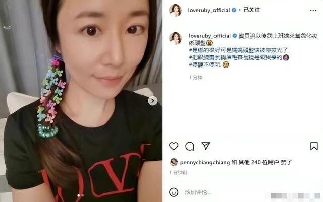 近日,林心如在社交平台上晒出了一组照片,瞬间引来了不少网友的关注,林心如用幸福的语气抱怨称:宝贝说以后我上班,她来帮我化妆绑头发,是绑得很好,但是头发都快被你拔光了,而且还吐槽女儿给自己化的眼线化到与眉毛齐长,还说是跟自己学的,让林心如哭笑不得!但是字里行间充满了幸福,或许这就是当妈妈的心态吧。