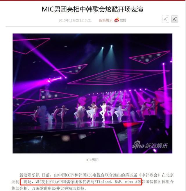 13年的中韩歌会,MIC还跟韩国组合miss A同台演出。