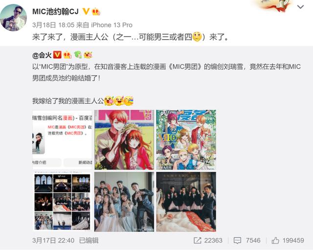 他跟《知音漫客》杂志合作,推出了以MIC男团成员为原型的漫画连载。