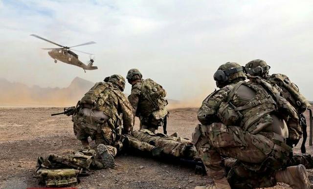 关于护目镜的使用,并不是像不少人理解的那样,是永不离身的标准配置。相反却是一种并不常用的专业设备。主要在于风沙强烈,而普通眼镜失效的情况下使用,就像图中的美军士兵一样,他正在等待将伤员送上担架,然后抬到医疗后送直升机上去。直升机桨叶所带来的巨大风沙,是他们不得不使用护目镜。