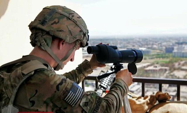 上图就是一名没有使用盔罩的翻译官,还可以看到他穿着OCP迷彩图案的ACU,和UCP图案的OTV。也许是因为经费问题,也许是为了有意区别翻译官与美军士兵而刻意为之。注意,阿富汗国民军虽然也使用ACH头盔,但是也使用绿色的LWH,同时使用四色丛林迷彩图案的OTV。