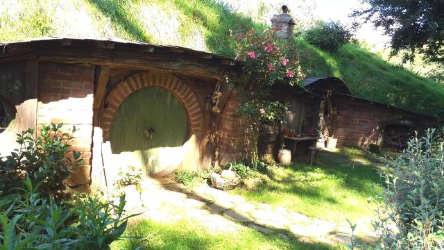 在游览过程中我闹了个大笑话,因为导游说英语,他说的什么,我自然是一无所知,我想让女儿给翻译,女儿示意我不要讲话保持安静状态,女儿女婿长期学习生活工作在英国,在参加团体活动时很自律。当导游说得眉飞色舞,其他游人不时发出欢快的笑声时,我尽管不知道说的什么,也许是受到感染便傻傻地跟着笑。我真后悔事先没有做足功课,比如在网上查阅了解与霍比特村相关的知识,如果观看了三部影片哪怕是其中的一部也好,这样尽管不懂英语,也能猜到导游大致说的什么,兴许就不至于如此尴尬。后来我在电视上收看了影片《霍比特人》,看到那些我在霍比特村看到的一模一样的场景,心中禁不住还有些激动。