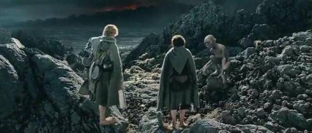 佛罗多,山姆和咕噜则带着魔戒,已经距离火山口很近了。