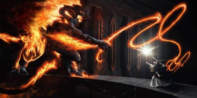 《指环王1》基本发现魔戒,护送魔戒到瑞文希尔,魔戒护送小分队成立。中途护送小分队穿过地坑遇到炎魔,巫师甘道夫与之战争中卒(当然没死,后来升级成白袍)。