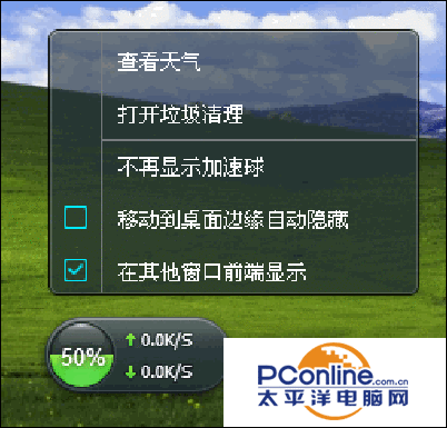 直接找到桌面上的加速球小图标,然后在上面单击右键,这时候会弹出一个菜单,在里面点击不再显示加速球命令,如下图所示: