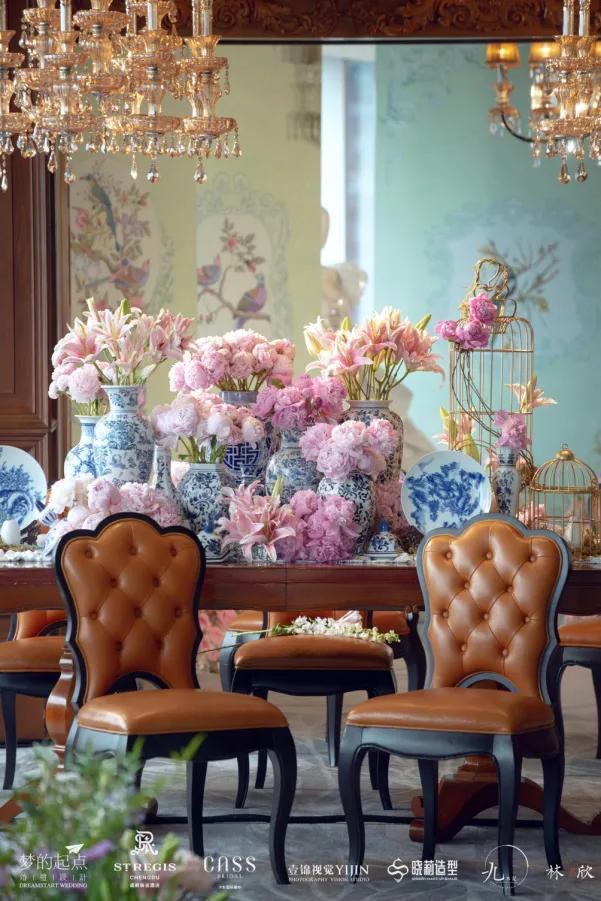 “当东方遇到西方”主题婚礼沙龙由成都瑞吉酒店与高端婚礼策划梦的起点携手打造,以富丽的色彩、美轮美奂青花瓷器结合闲中花鸟,与典雅欧式风格碰撞,为所有嘉宾带来精致奢华的体验。与此同时,多家高端奢侈品牌HR赫莲娜、周大福、水井坊、CASS国际婚纱等分享时下流行婚礼风尚,尽享恒久典雅的高品质婚礼。极具特色的“马刀开香槟”作为本场活动的结束仪式,也完美展现了瑞吉酒店标志性的管家服务,让嘉宾对于瑞吉这一历经百年积淀的奢华酒店品牌有了更为生动的认识,也深刻感受到私人定制婚礼服务的精髓。
