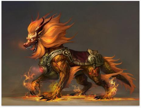 火麒麟,传说中一种神兽,浑身充满火焰,极度凶残,天生大力,可御空飞行。