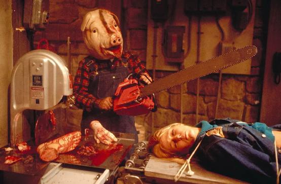 比如,讲述恐怖片影迷cos怪物杀人的《消失于黑暗》,以及通过笨拙的“猪头”电锯杀人来讽刺《德州电锯杀人狂》的《地狱旅馆》等等。