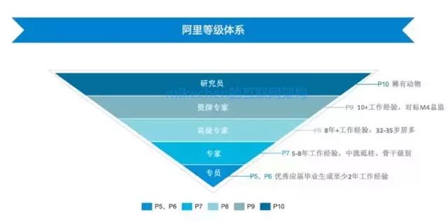 阿里按P系列分为14级,其中P6、P7的人数最多,P7以下的员工数超过70%。一般社招的最低门槛是P6,校招进去后会从P4、P5做起,然后慢慢往上升。