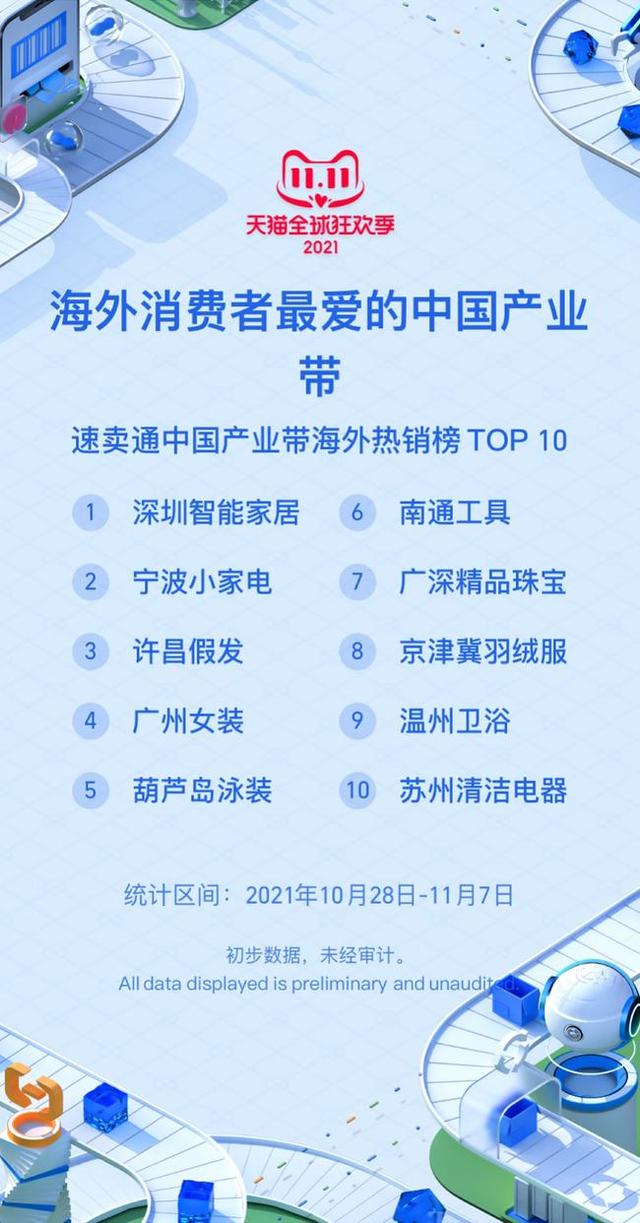 据天猫数据显示,“双十一”海外消费者最爱中国产业带中深圳智能家居排名第一。