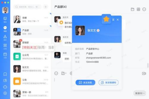 5、360织语:以即时通讯(IM)为基础,基于人工智能会话界面的智能协作平台。产品以IM为主,并无RTC。