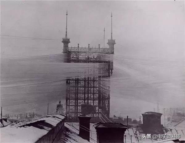 19世纪末的电话线杆,上面有几千条电话线